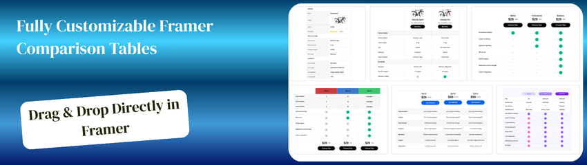 This component is Part of the Comparison Tables plugin. Browse and insert premium comparison tables directly in Framer. Start for free